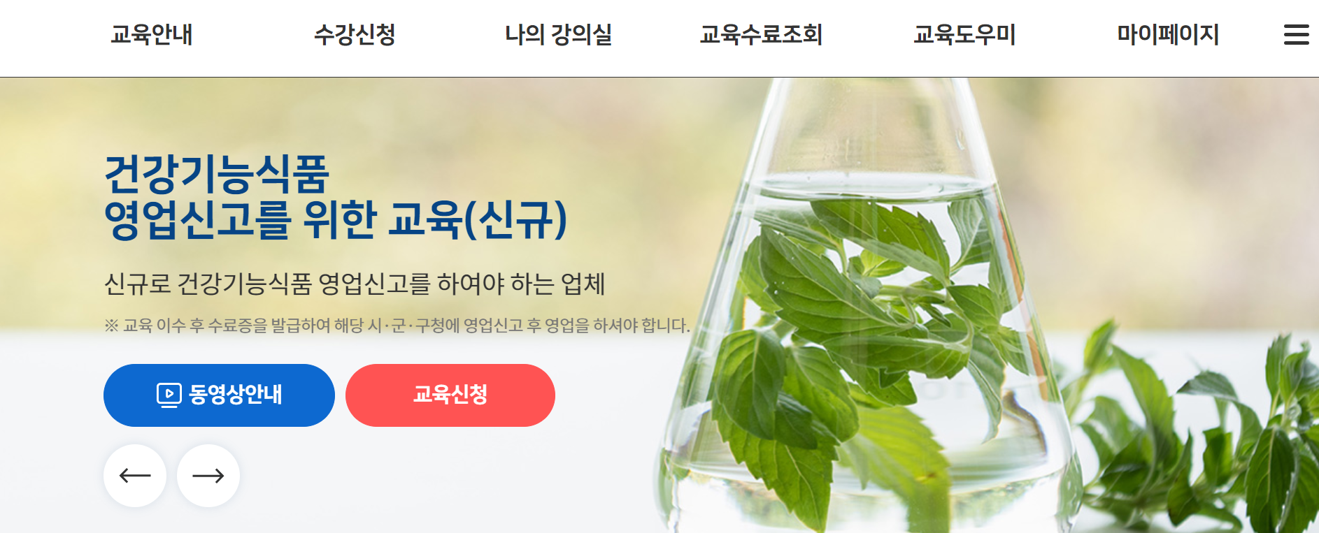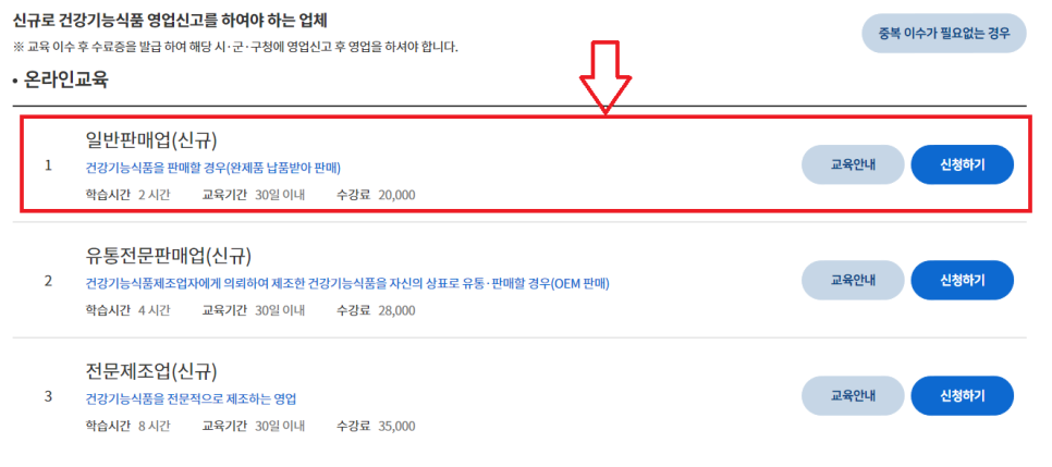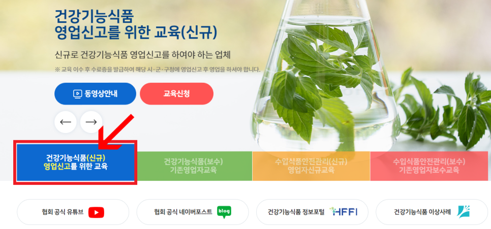 1. [파란색 네모] 건강기능식품(신규) 영업신고를 위한 교육