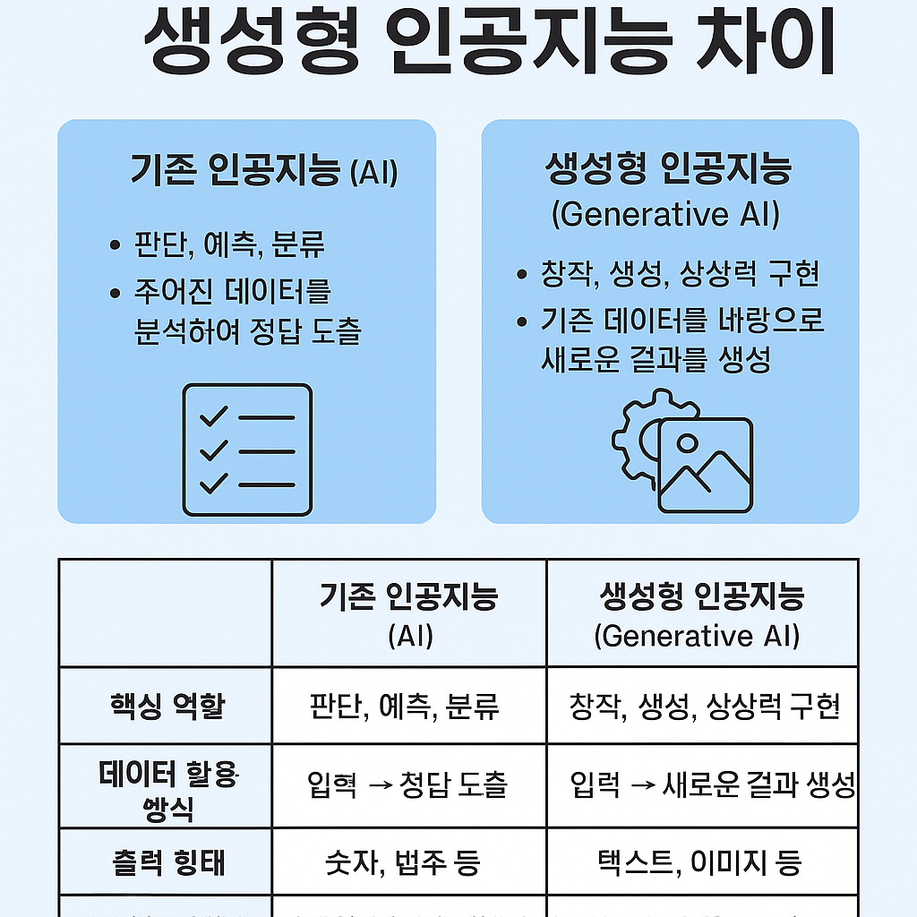 💬 한 줄 요약: 기존 AI는 똑똑한 조수였다면, 생성형 AI는 창의적인 동료가 되었다.