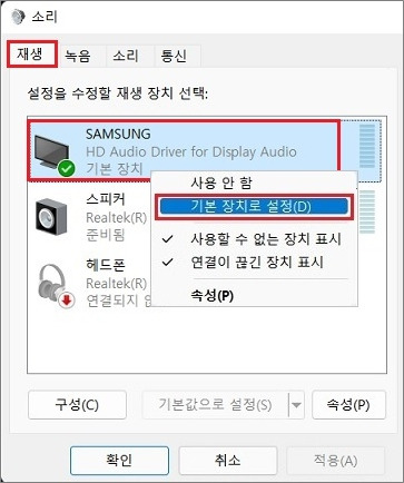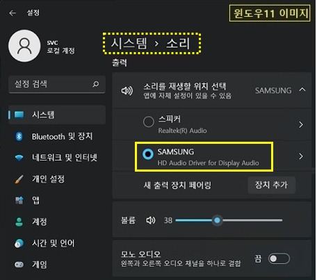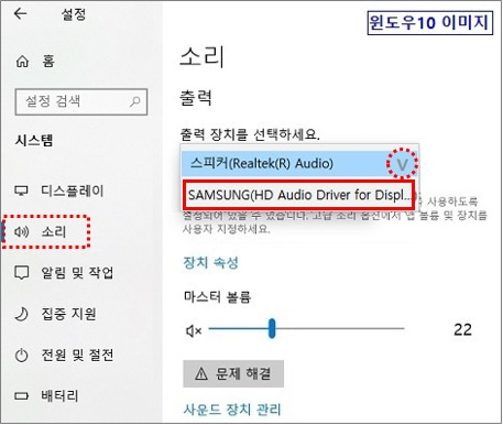 1) 윈도우 설정에서 출력장치 변경하기