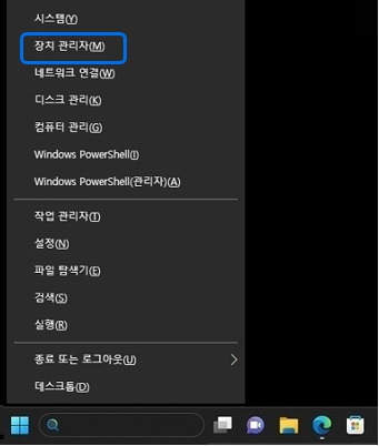 1) 키보드에서 Windows 로고 키 + X 키를 누른 후 [장치관리자(M)] 클릭하세요.