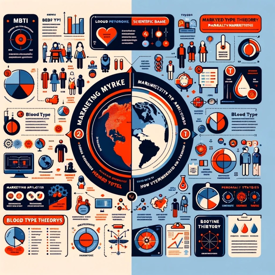 MBTI와 혈액형별 성격 유형 판단은 각각의 문화적 배경과 이론적 기반을 가지고 있으며, 마케팅 분야에서 소비자 행동을 이해하고 예측하는 데 중요한 도구로 활용됩니다. 이러한 도구들은 마케터들이 더 개인화되고 타겟팅된 전략을 개발하는 데 도움을 주며, 변화하는 소비자 기대에 부응할 수 있게 합니다. 비록 과학적 근거와 수용 범위에 차이가 있지만, 두 접근 방식 모두 인간 행동의 다양성을 이해하려는 근본적인 노력에서 출발한다는 공통점을 가지고 있습니다.