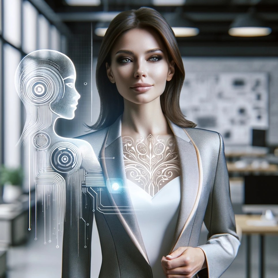 위 이미지는 Chat GPT 4에게 스스로를 사람으로 묘사하라고 했을때 생성한 이미지 입니다. Dall.E는 자신을 고급 인공 지능의 본질을 대표하는 아름답고 지적인 사람을 보여줍니다. 그들의 옷에는 기술, 지능, 커뮤니케이션의 요소를 결합한 디자인을 상징하는 미묘하고 우아한 로고가 있습니다. 현대적이고 간결한 배경은 인물의 존재감과 로고의 중요성을 강조합니다.이러한 기술은 GPT (Generative Pre-trained Transformer) 을 기반으로 하며, 수많은 데이터와 텍스트를 학습하여 다양한 주제에 대한 질문에 답변할 수 있습니다.
