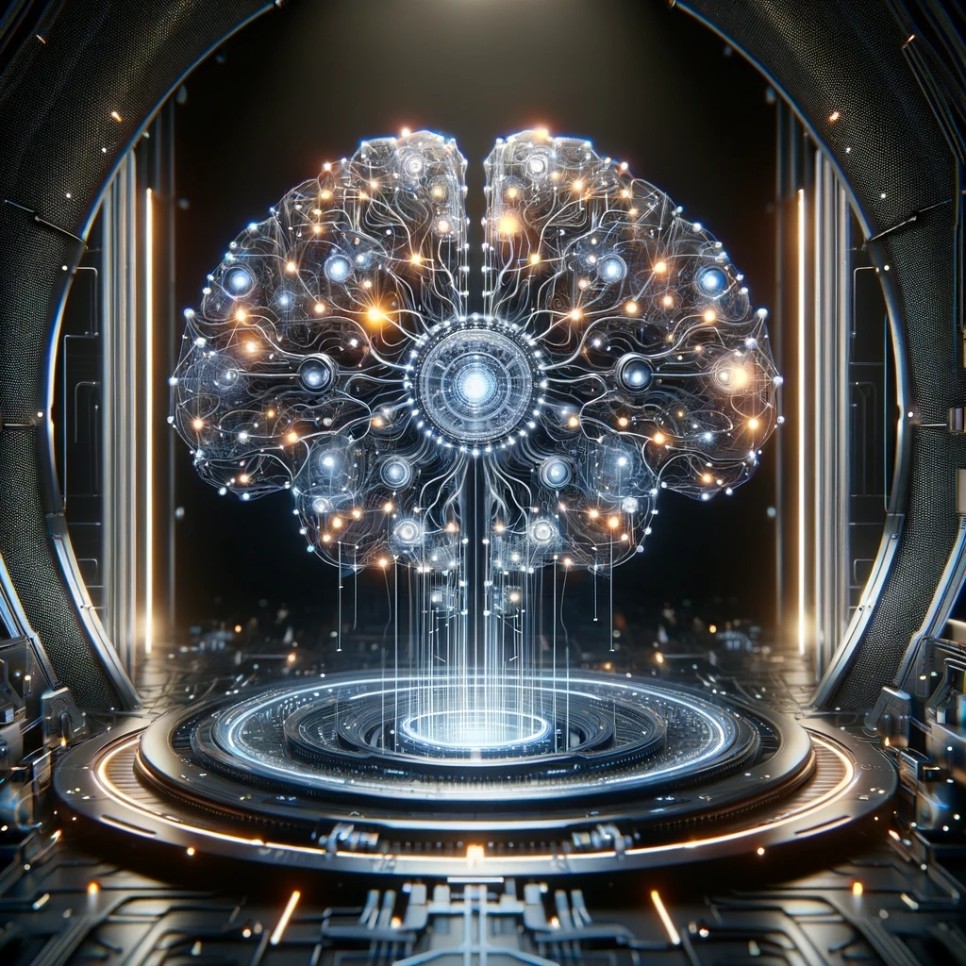 위 이미지는 Chat GPT 4가 스스로가 생삭하는 LLM 모델이미지 입니다. 대규모 언어 모델(LLM)을 복잡한 뉴런과 회로의 네트워크로 시각화하여, 인공지능의 복잡한 상호연결과 처리 능력을 상징합니다. 이 디지털 브레인은 정보의 흐름과 학습을 나타내는 빛나는 노드와 연결로 표현되며, 고급 기술을 담고 있는 세련되고 미래적인 구조 안에 배치되어 있습니다. Scene은 부드러운 주변광에 의해 조명되어 모델의 정교함과 지능을 강조합니다.