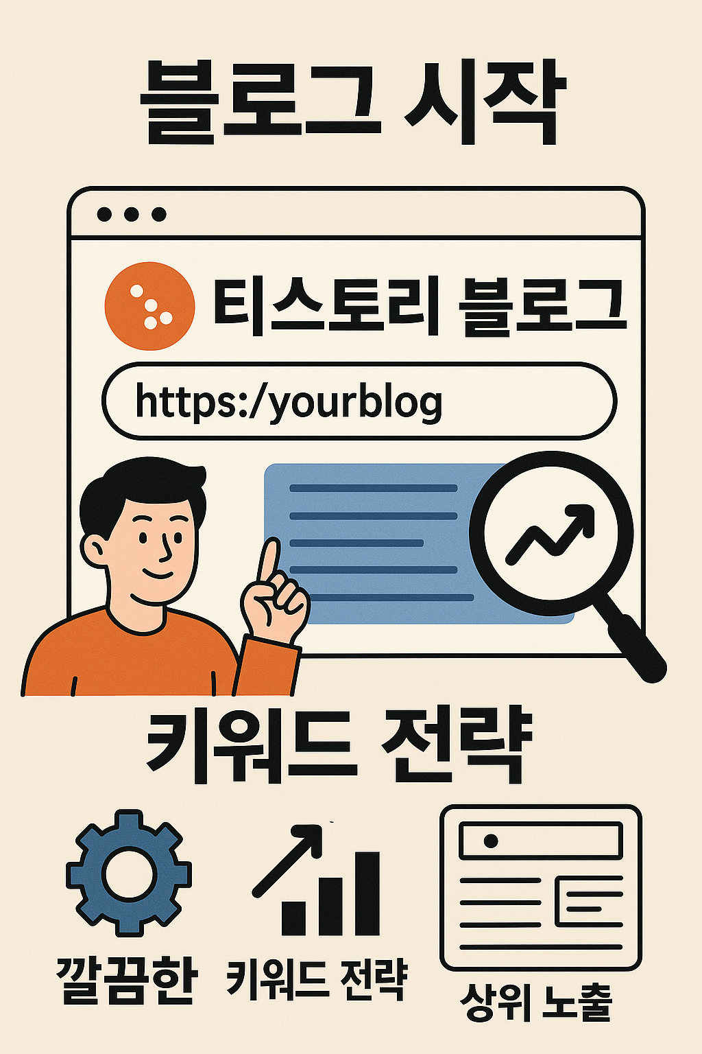 안녕하세요, 티스토리 블로그를 시작하려는 여러분! ✨ 블로그를 만든다는 설렘에 가득 차 있을 여러분에게, 블로그의 첫인상이자 핵심인 '주소(URL)'와 '스킨'에 대한 아주 중요한 팁을 드리려고 해요. 저는 처음에 블로그 주제를 못 정해서 그냥 'STROY'라고 지었는데... 저 같은 실수 하지 마시라고 꿀팁 대방출합니다! 😉