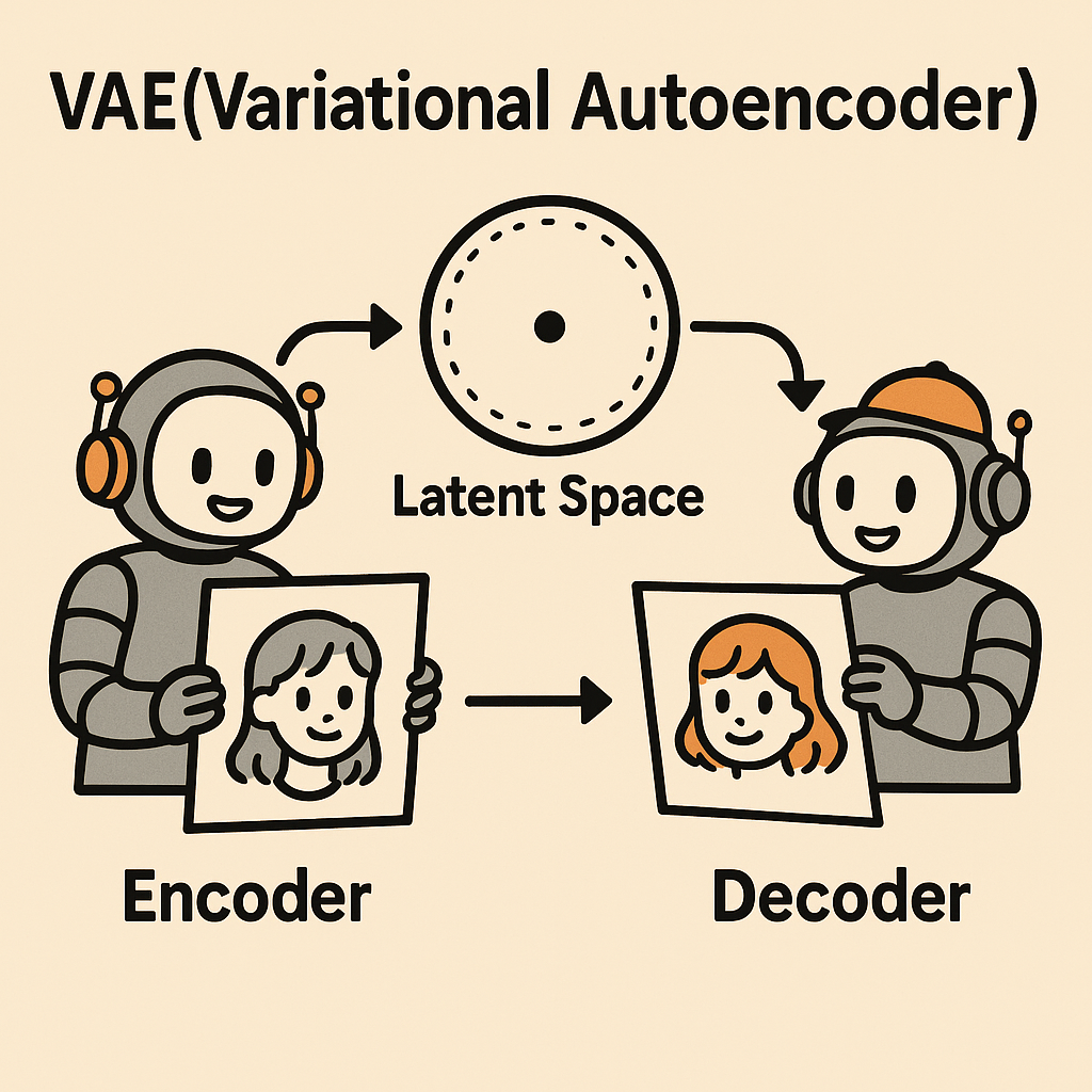 VAE(Variational Autoencoder)는 기존 오토인코더에 확률적 개념을 더한 딥러닝 기반의 생성형 모델입니다.